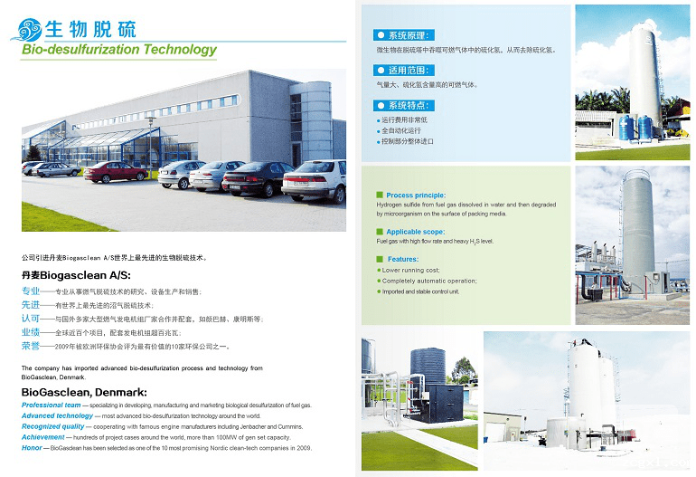 目前污水、垃圾处理过程中,越来越多的工程项目选用厌氧处理工艺,沼气作为一种衍生产物,渐渐被我们所熟知并利用。但从厌氧罐中出来的沼气含有较高浓度的H2S及其它一些杂质,如不对沼气进行脱硫、净化处理,则会对沼气运送管道、存储设备及后续运用设备发生腐蚀,削减运用年限并形成安全危险。所以,通常是先通过脱硫净化处理后再利用。